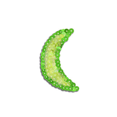 Sequin motifs, 3×5.5cm, 1.25″x2″, cresent moon, green (SKU# SM1676/GRN). Sold per pack of 12