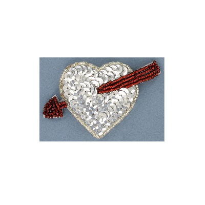 Sequin motifs, 8.5x5cm, 3.5″x2″, heart with arrow, silver (SKU# SM596/SI). Sold individually.