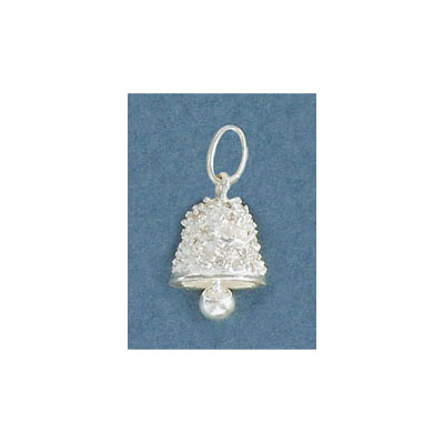 Sterling silver .925 pendant, 10mm, bell charm with stones. (SKU# MP7318/SSWH). Sold individually.