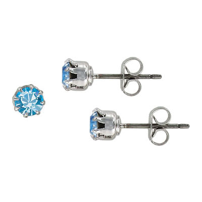 Swarovski titanium earposts, birthstone crystal earrings, aqua color, ss19 size. March birthstone, rhodium plate. (SKU# RER/SS19/203R). Sold per pack of 6