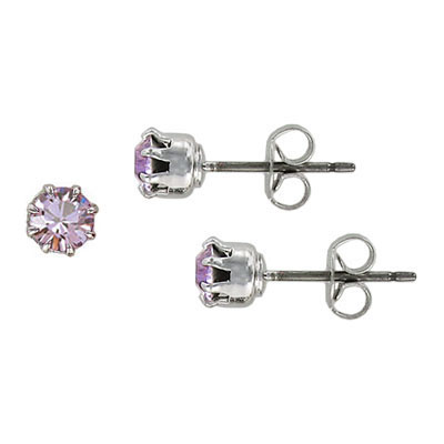 Swarovski titanium earposts, birthstone crystal earrings, light amethyst color, ss19 size. June birthstone, rhodium plate. (SKU# RER/SS19/214R). Sold per pack of 6