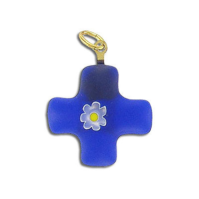 Venetian glass cross pendant 20x20mm, frosted blue. (SKU# VG9349/9G). Sold individually.